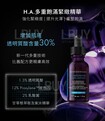 透明質酸能提供強效的補濕功效,但其分子大小對於皮膚作最佳吸收而言仍然較大。H.A.多重飽滿緊緻精華獨特地結合新一代透明質酸配方﹑12%Proxylane及紫米精華等活性成分,同時刺激透明質酸生成、抑制透明質酸降解,更有效保持皮膚透明質酸含量。