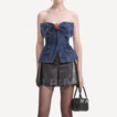 呢款 Self-Portrait denim bandeau top 以型格牛仔藍為主調,剪裁貼身展現迷人線條,背面設有拉鏈設計,方便穿著。胸前蝴蝶結細節配上閃爍胸針裝飾,為中性丹寧注入一絲柔美與華麗感。側邊兩個翻蓋袋增加層次感,令整體設計更具造型感。無論配搭高腰牛仔褲或半截裙,都能輕鬆打造出型格又不失女性魅力嘅時尚造型。