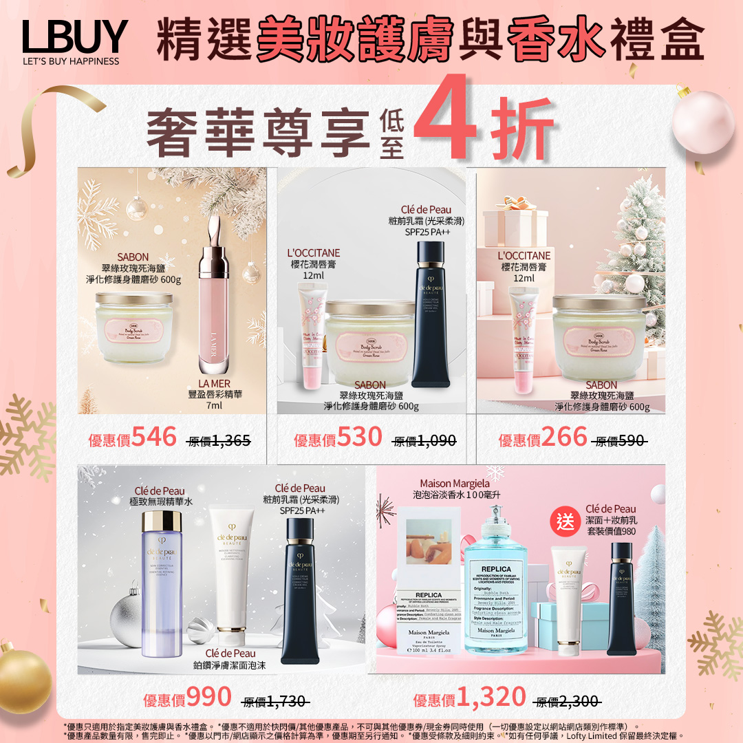【🎁LBuy 精選美妝護膚與香水禮盒|奢華尊享低至4折💗】 【🎁LBuy 精選美妝護膚與香水禮盒|奢華尊享低至4折💗】 ✨冬日將至,空氣中瀰漫著節日的香氣與幸福氛圍✨無論是送給摯愛,還是犒賞自己——一盒精緻禮盒,就是一份「讓人怦然心動的溫柔」💞 💎 LBuy 精選世界知名品牌美妝護膚與香水禮盒,限時尊享低至4折優惠,讓美麗與芳香同時綻放! 🎀套裝禮盒包括: 1️) 玫瑰美肌‧美唇奢護禮盒:SABON Green Rose 身體磨砂膏 2025-12-11 14:30:00