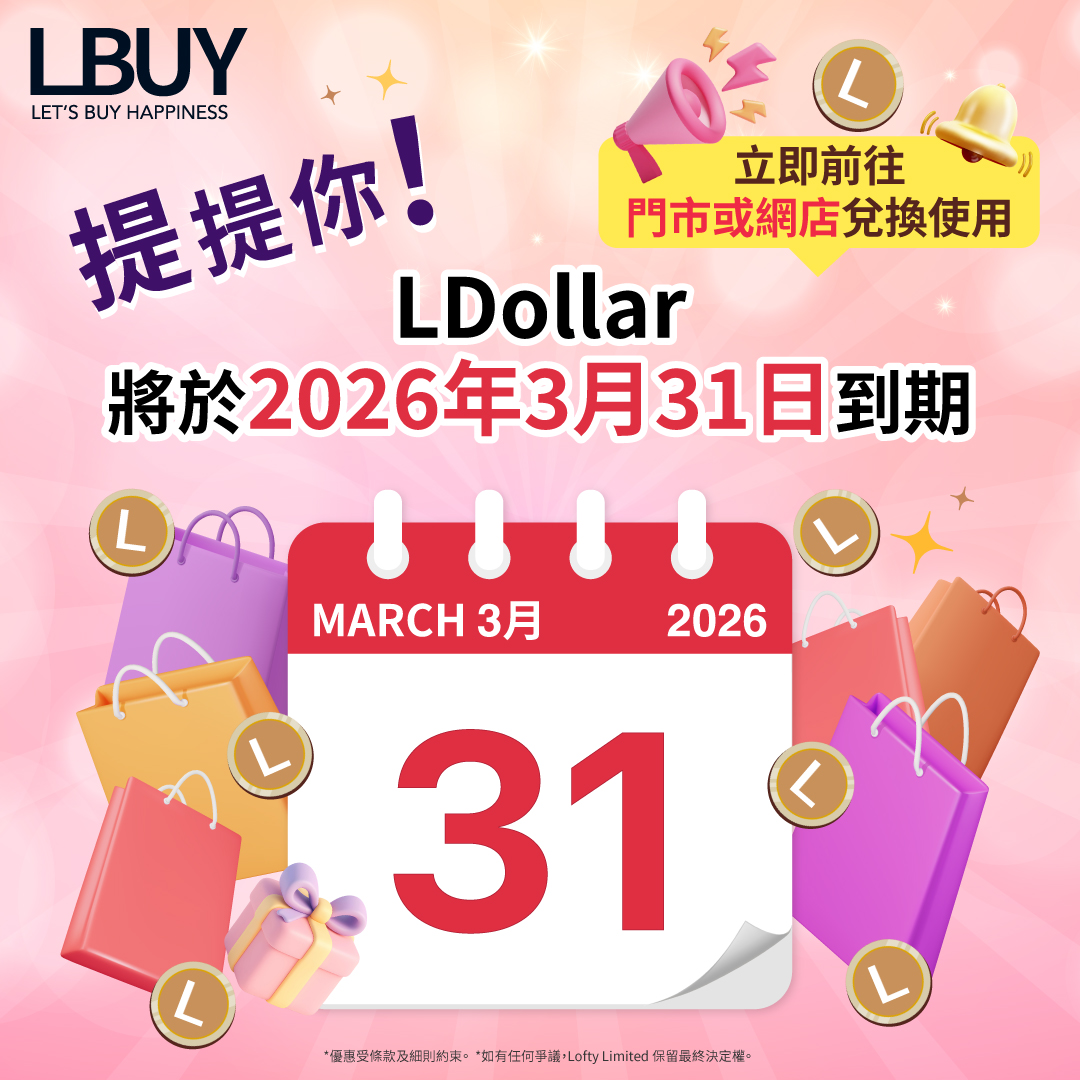 【⏰溫馨提示:LDollar 會員積分即將到期🛍️】 【⏰溫馨提示:LDollar 會員積分即將到期🛍️】 感謝各位LBuy 會員一直以來的支持🥰!早前消費累積的 LDollar 將於 2026年3月31日正式到期❗尚未使用的積分記得要在期限前把握機會兌換使用💛✨ ✨女神節及白色情人節新品將陸續登場,更多驚喜等您來探索! 🛍️立即親臨門市或網店 LBuy.com 選購! *優惠受條款及細則 2026-02-26 10:00:00
