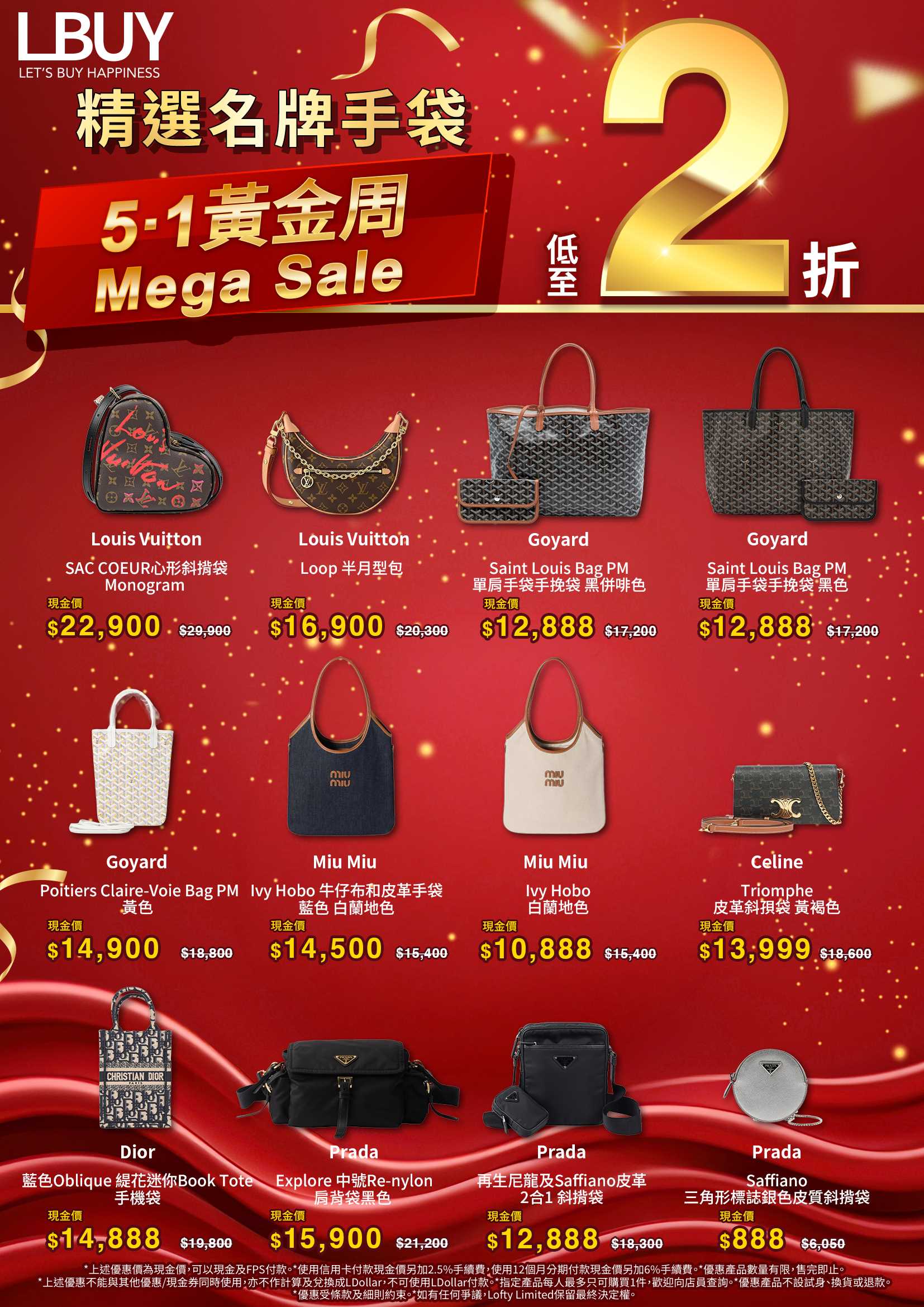 ✨適逢 5.1 黃金周,LBuy 隆重呈獻年度矚目購物盛事——精選名牌手袋限時激減低至2折,讓您輕鬆入手夢想名牌單品!🛍️