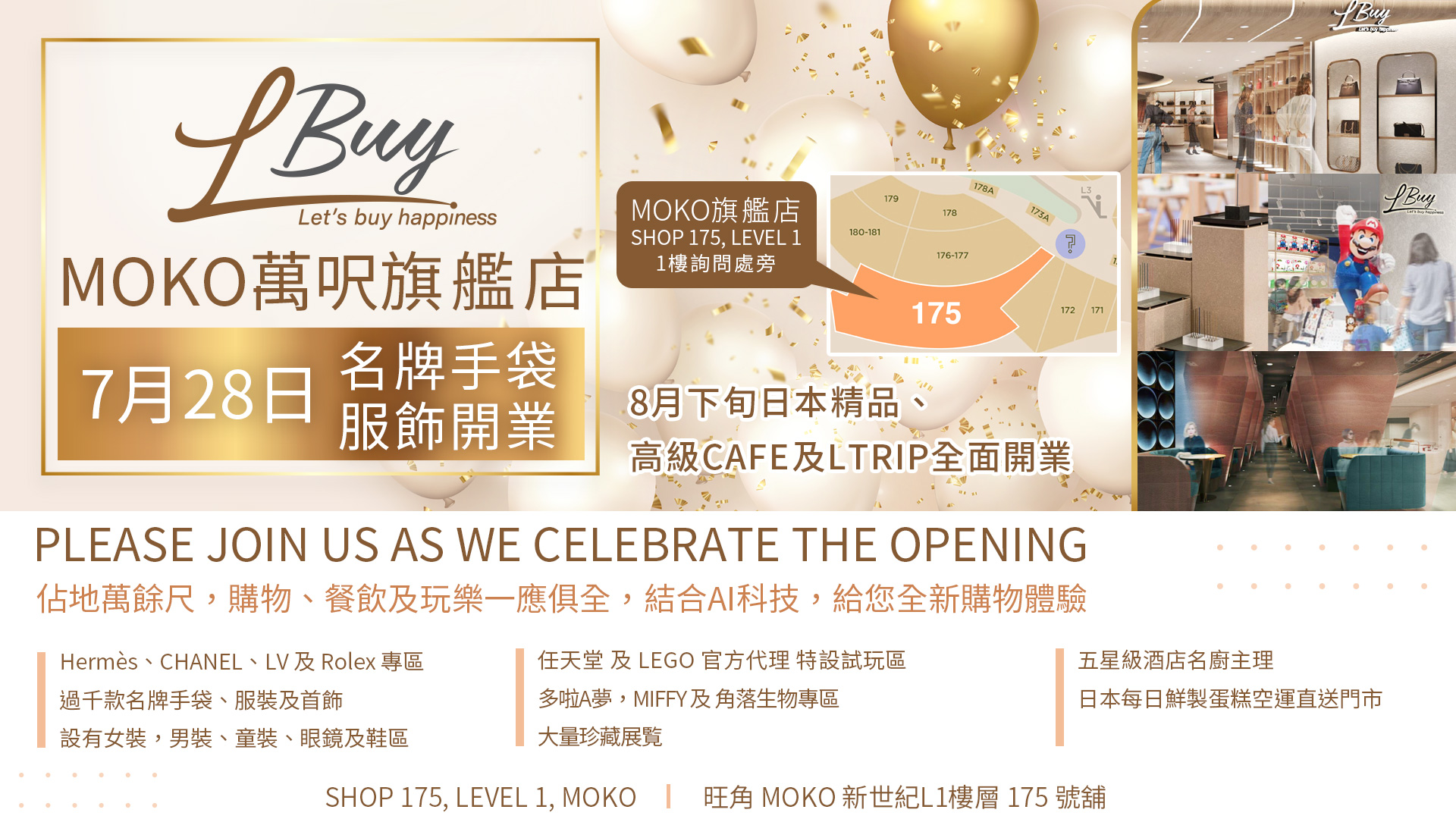 LBuy x LDeluxe為您帶來全新購物體驗!LBuy x LDeluxe將於7月28日遷往同樣位於MOKO新世紀廣場的1樓175號旗艦店。旗艦店將於7月28日起試業,佔地過萬呎,集購物、餐飲及玩樂於一身,結合AI科技,為每位顧客提供全新購物體驗。