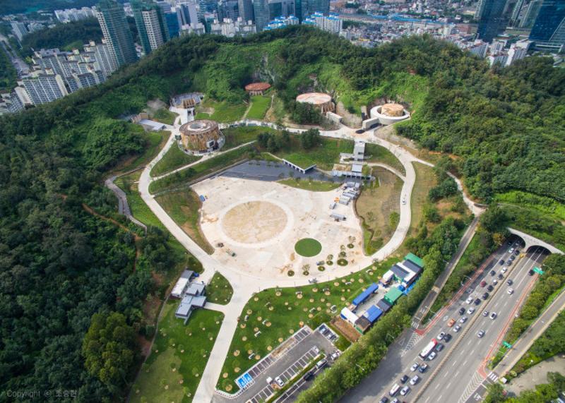 從遠處拍攝的「SANDBOX」就是「鷺得島」已是鐵一般的事實,可仔細一看,「SANDBOX」的大樓居然不在「鷺得島」,而是與「鷺得島」相隔約30分鐘車程的文化儲備基地(상암 문화비축기지)。前身是麻浦石油儲備基地的廢棄工業設施,現為保存歷史價值、發展可持續生態而改造成供市民展開文化活動的公園。原有的5個儲油槽重新以劇場、展館、多功能臨時展館、資訊交流中心的身份誕生,又一個為韓國市民提供休憩和文化活動的寧靜空間。