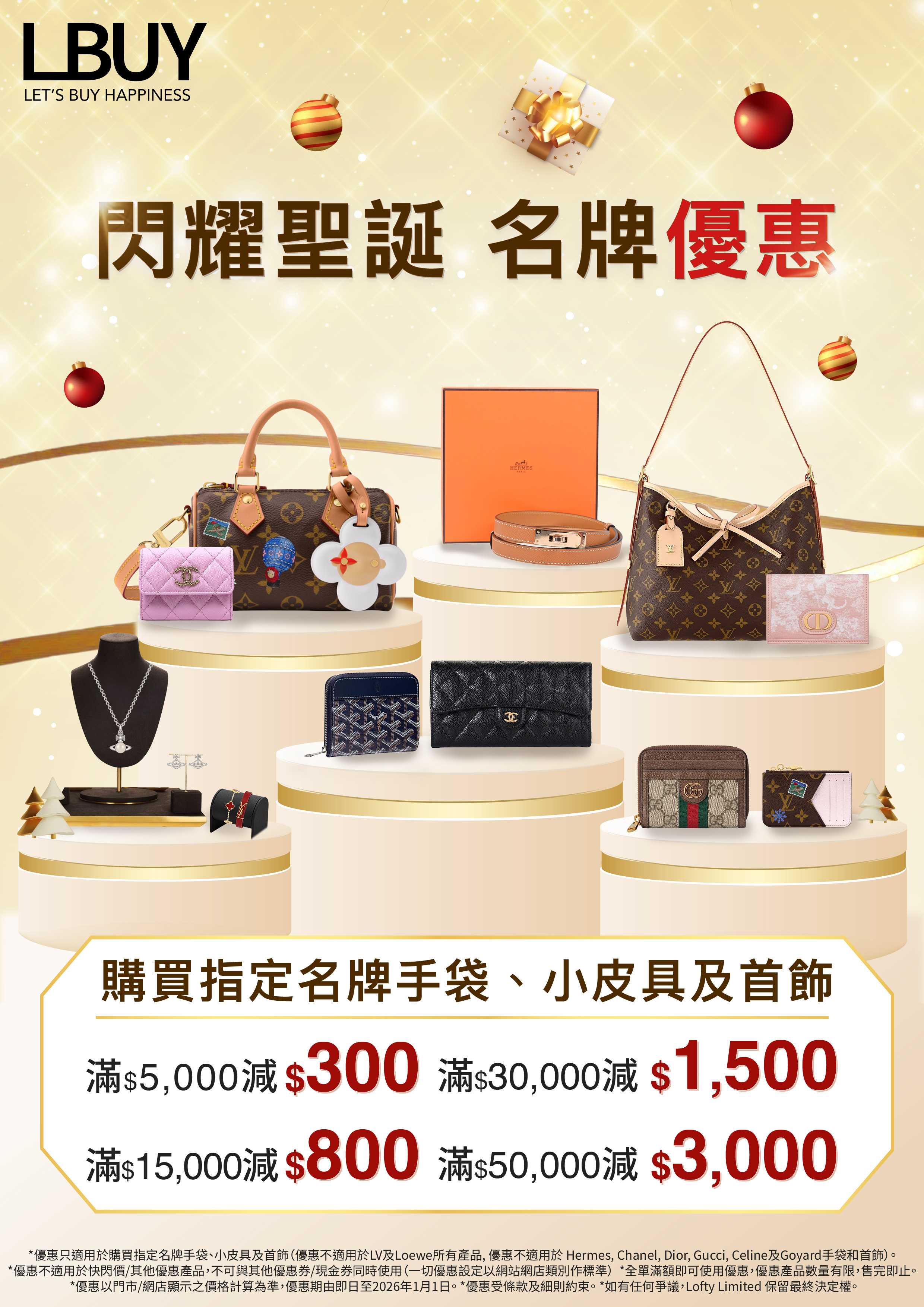 節日驚喜賞不停!💝感謝大家熱烈支持,LBuy 特別將名牌滿減優惠延長至 202611日,讓你在這個節慶季繼續以時尚與光采迎接新一年 ✨