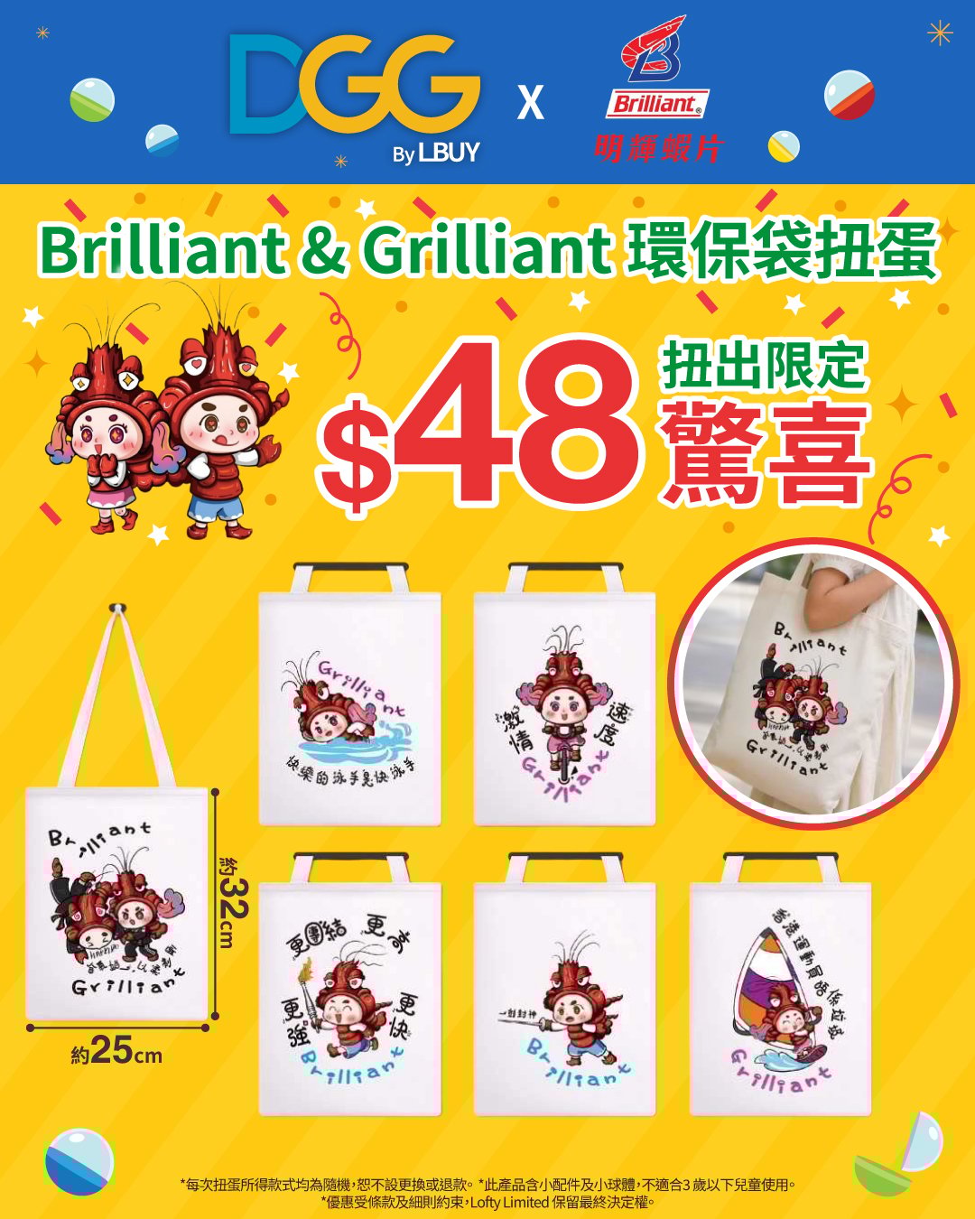DGG by LBUY 今次驚喜聯乘香港經典品牌明輝蝦片,推出以人氣角色 Brilliant & Grilliant 為主題的限定環保袋扭蛋系列🥳!