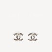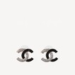 Chanel CC logo Earrings Black Silver ABB931