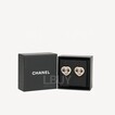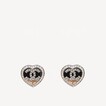Chanel Heart Shape Crystal Black and Gold CC Logo Earrings ABB664