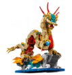 Usher in the Year of the Dragon with this majestic LEGO® Spring Festival Auspicious Dragon figure (80112). A meaningful, symbolic cultural gift toy for yourself or kids aged 10 and over, this LEGO brick-built mythical creature features a tilting head and an opening mouth. Specially printed elements for the eyes and scales enhance its authentic look. The buildable toy dragon holds a traditional blue crystal element and is sitting on a brick-built rock in the sea. Attach the nameplate to complete a dramatic display.