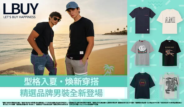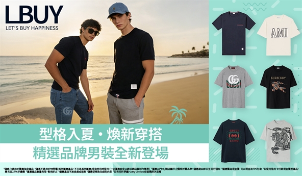 【☀️型格入夏・煥新穿搭|精選品牌男裝全新登場】 夏天,就要穿得簡單有型。LBuy 精選各大品牌男裝新款,以俐落剪裁、輕薄物料與百搭設計,輕鬆打造自在的夏日造型🌴。一件合身 T‑shirt,配搭型格太陽眼鏡🕶️及百搭帽款🧢,即時提升整體層次,輕鬆打造夏日型男 Look。 2026-04-10
