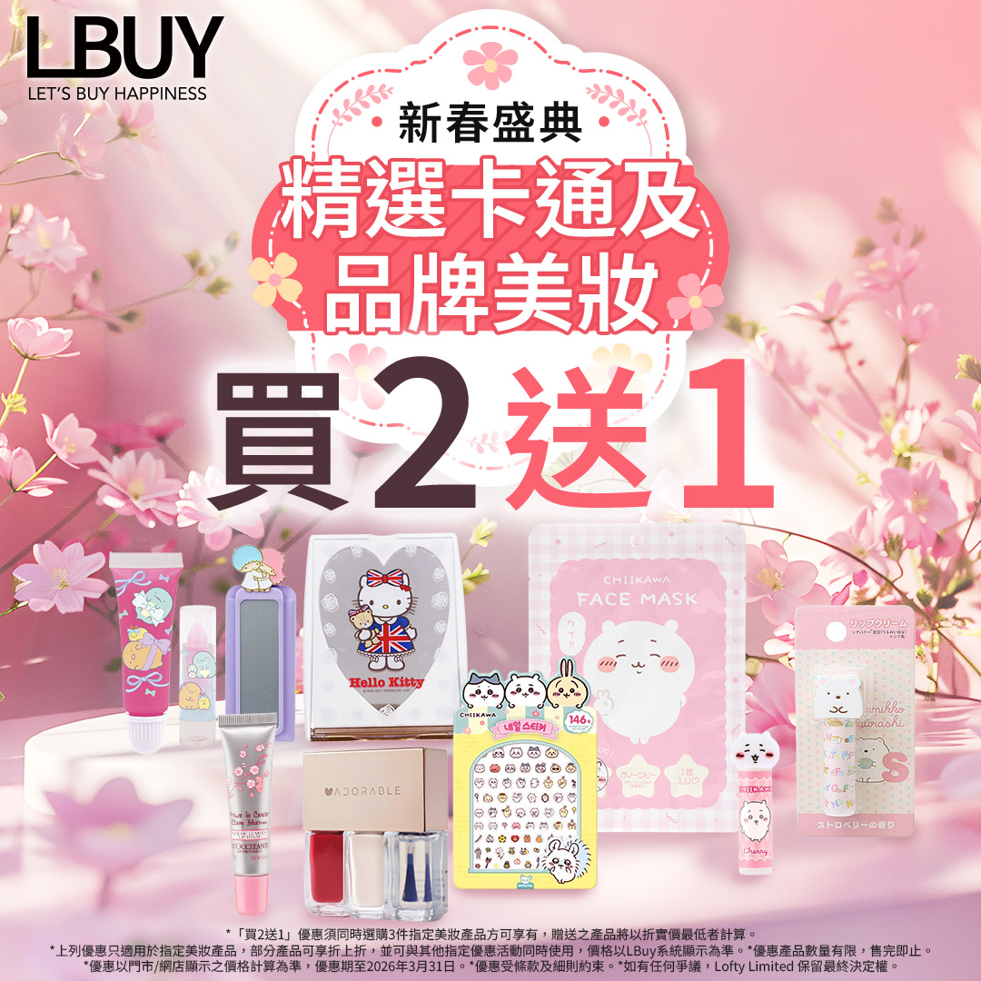 【🌸新春盛典・精選卡通及品牌美妝買二送一✨】 【🌸新春盛典・精選卡通及品牌美妝買二送一✨】 卡通控及美妝迷注意💄💕LBuy 為您準備最夢幻的精選卡通及品牌美妝「買二送一」新春優惠!從 Sanrio、Chiikawa、角落生物等人氣角色,到多款熱賣品牌美妝與護膚產品通通可選。趁住新春換季,替自己添置心動妝物、或為親友入手精選禮品,心動之選一次選齊!💖✨ 🛒立即選購:https://c01.co/1dUxj *「買2送1」優 2026-02-21 10:00:00