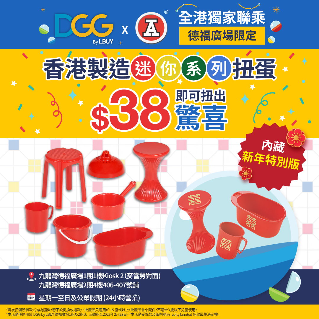 【DGG by LBUY x 紅A 全港獨家聯乘扭蛋登場🎉】 【DGG by LBUY x 紅A 全港獨家聯乘扭蛋登場🎉】 DGG by LBUY 首度聯乘經典香港品牌紅A,推出全港獨家的「香港製造」迷你系列扭蛋😍!現已於 DGG by LBUY 德福廣場1期及2期店限定登場,以精緻可愛的迷你塑膠家品重新呈現獨有的港式情感! 💰每次只需 HK$38,即可隨機扭出迷你版塑膠家品,共7款設計! ✨更驚喜加推3款新年特別版,每顆扭蛋都充滿香港情懷與開 2026-02-14 12:00:00