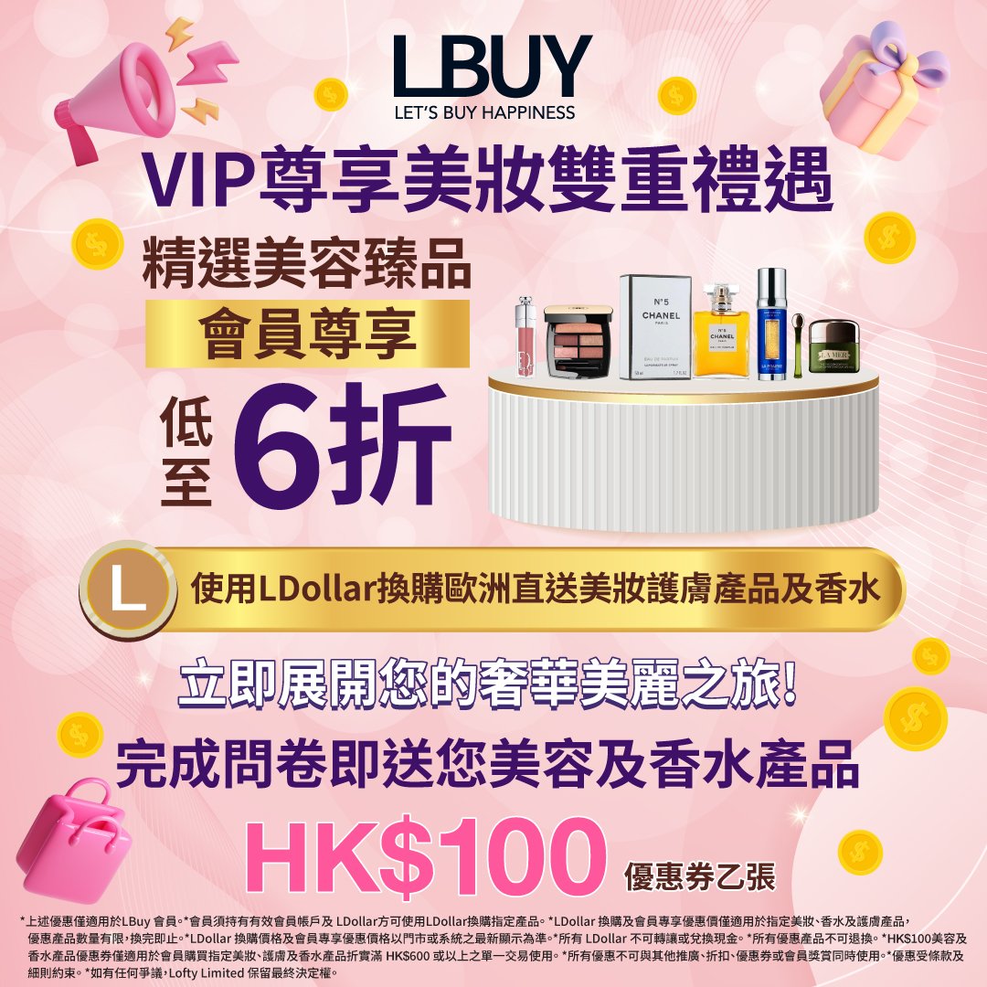 【💖 LBuy VIP 尊享美妝雙重禮遇 · 開啟您的奢華美麗之旅💄✨】 【💖 LBuy VIP 尊享美妝雙重禮遇 - 開啟您的奢華美麗之旅💄✨】 季節更迭,是時候為自己添上一份由內而外的精緻儀式感。LBuy 為尊貴 VIP 會員呈獻美妝禮遇——精選歐洲直送美容、護膚及香水臻品尊享低至6折,讓您的美麗光采悄然升級💫💐 👑 VIP 會員專屬 · 雙重尊享禮遇 🎁 禮遇 1:歐洲直送美妝低至6折會員可尊享精選美容、護膚及香水產品優惠,更可使用 2026-02-19 10:00:00