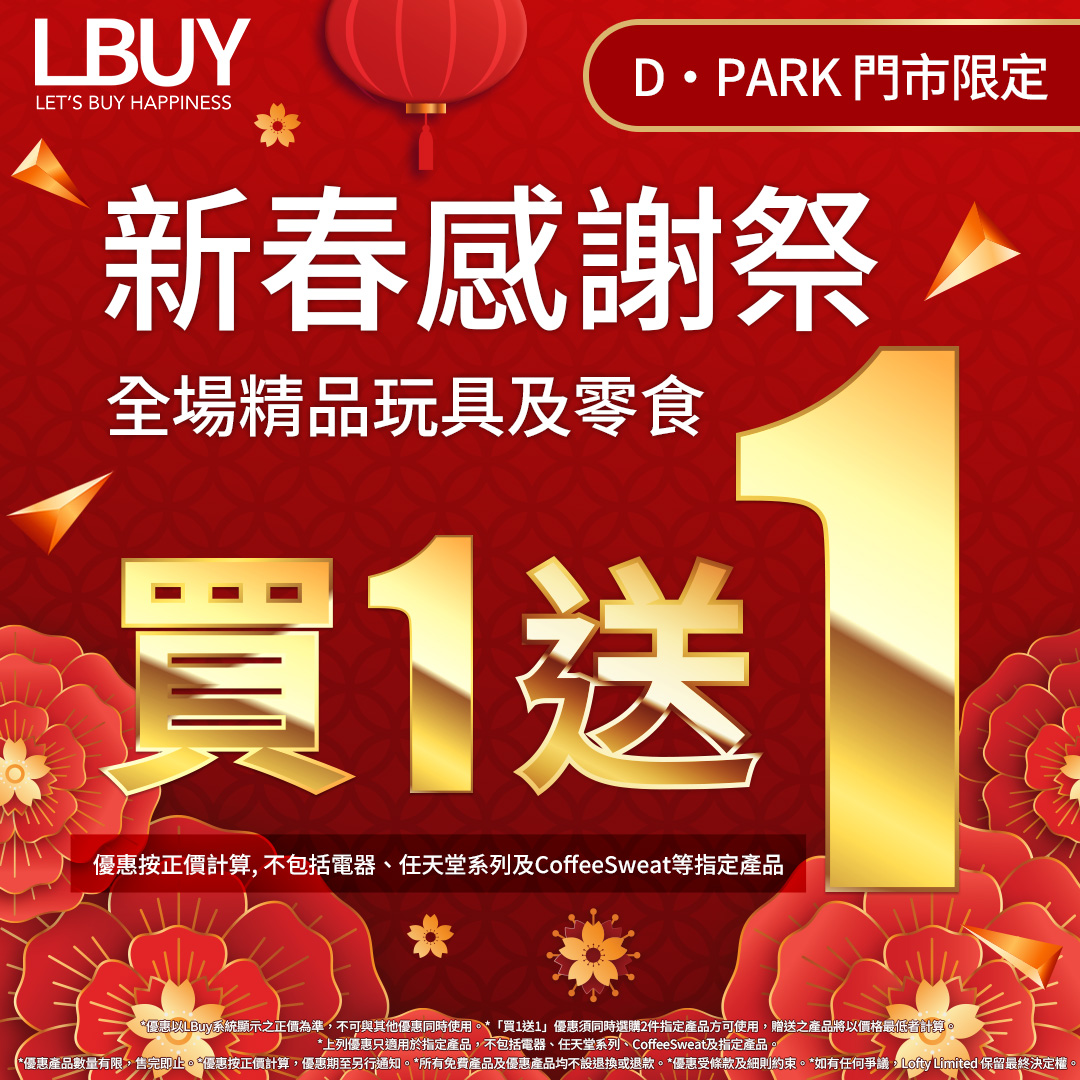 【✨D·Park新春感謝祭・全埸精品玩具及零食買1送1🎊】 【✨D-Park新春感謝祭・全埸精品玩具及零食買1送1🎊】 🧧🎁迎接新春佳節,為感謝顧客一直以來的支持,LBuy 特別為您準備開運好禮,希望與您一同分享節日的喜悅。即日起,於 D·Park 門市購買指定精品玩具及零食即可享有買1送1優惠,讓您更輕鬆入手各款過年必備小物! ✨門市匯集多款深受歡迎的角色精品、造型玩具及人氣零食,無論是為生活增添趣味、營造節慶氣氛,或為親友準備賀 2026-02-13 15:00:00