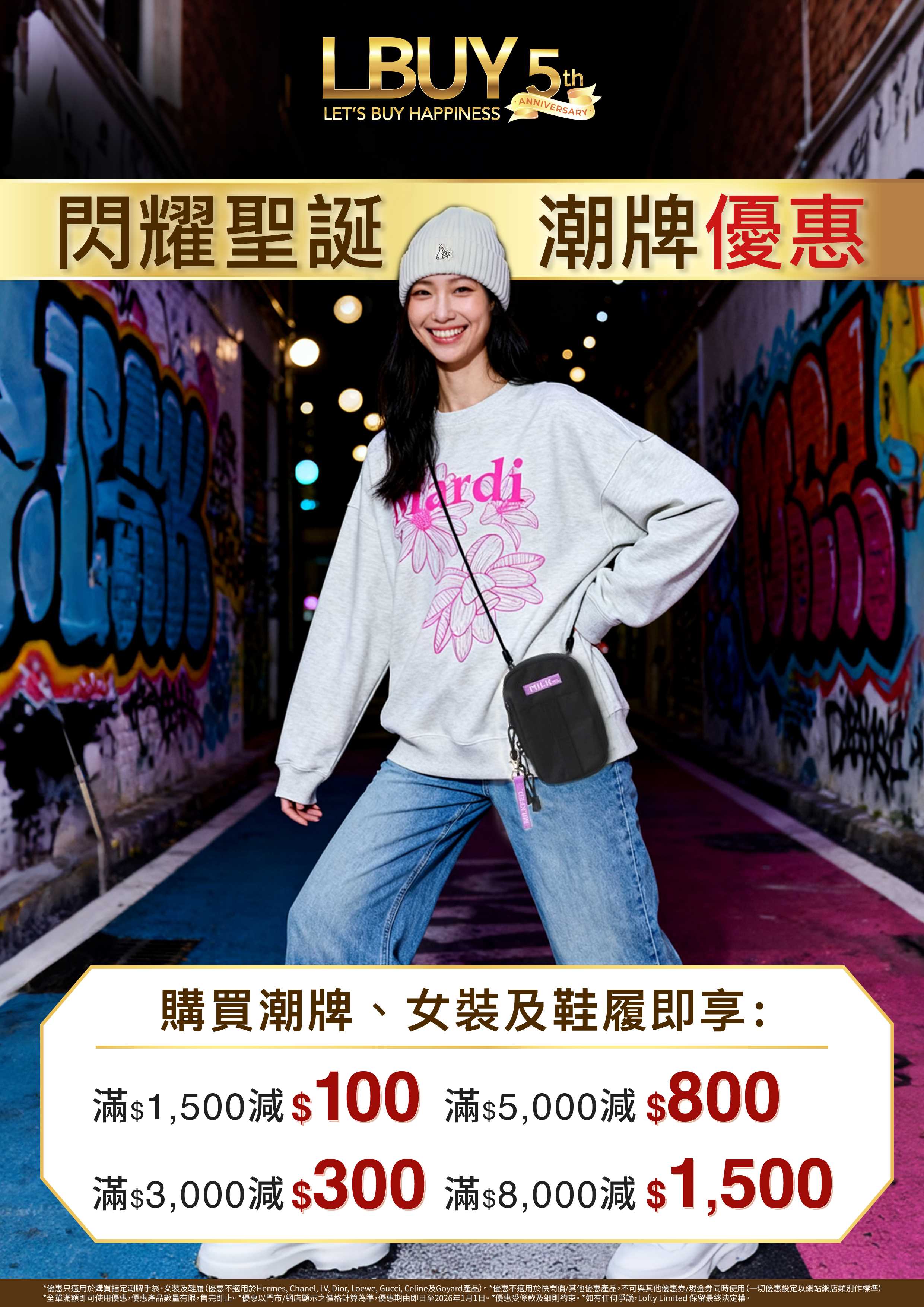 #LBuy #LBuyHK #LBuyMoko #LBuy精品主題店 #LBuyYoho #LBuyDPARK #LBuyCentral #LBuy數碼扭蛋專門店 #DGGLBuy數碼扭蛋站 #2025正版正貨商標 #LBuy5周年 #購物優惠 #折扣優惠 #潮牌 #潮牌滿減 #聖誕造型 #街頭時尚 #型格穿搭 #聖誕優惠