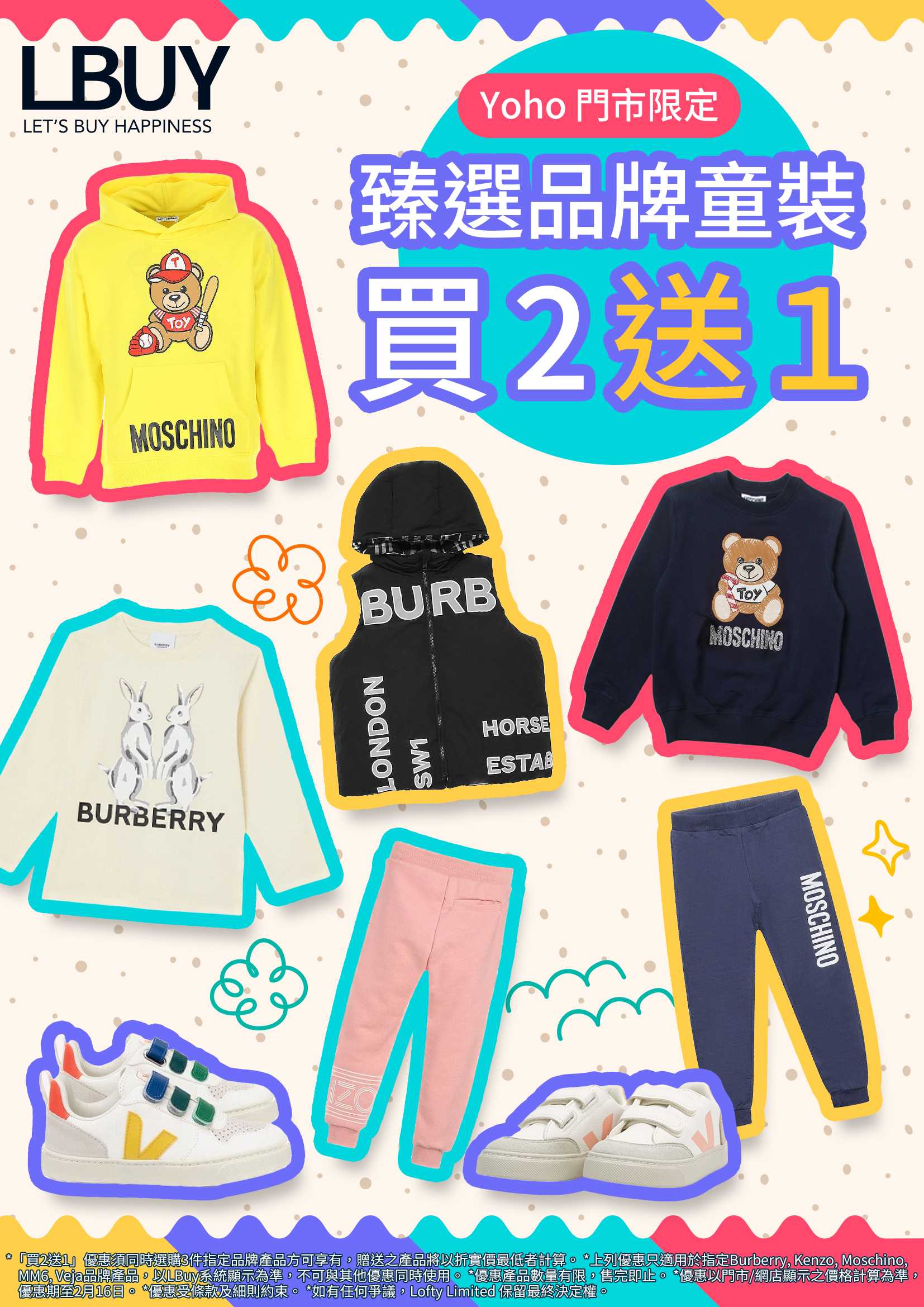 ✨精選品牌童裝買2送1 (Burberry, Kenzo, Moschino, MM6, Veja) — 最抵價入手寶貝日常穿搭必備!