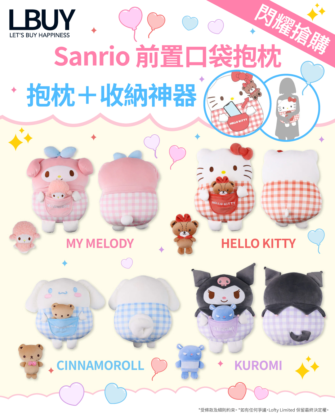 #LBuy #LBuyHK #LBuyMoko #LBuy精品主題店 #LBuyYoho #LBuyDPARK #LBuyCentral #LBuy數碼扭蛋專門店 #DGGLBuy數碼扭蛋站 #2026正版正貨商標 #購物優惠 #折扣優惠 #Sanrio #前置口袋抱枕 #抱枕 #HelloKitty #MyMelody #玉桂狗 #Kuromi
