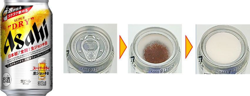 只要把啤酒罐的盖完全拉开,泡沫就会自动涌出,是日本第一次有啤酒生产商研发出自动起泡的罐装啤酒。