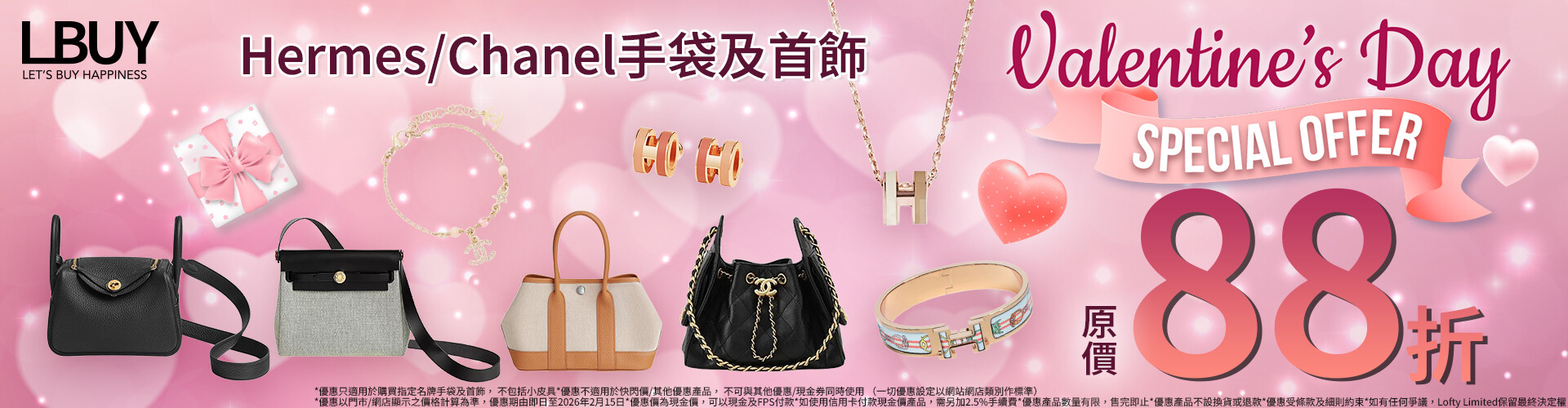 LBuy情人節浪漫呈獻 - Hermès,Chanel,Dior 手袋及首飾原價88折,立即入手!
