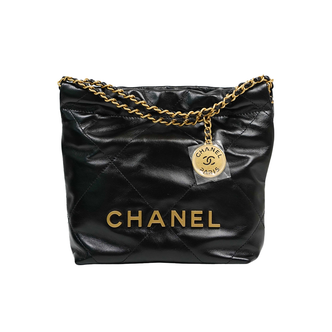 8. Chanel22 Mini Handbag 金色Logo光面小牛皮黑色迷你手袋 AS3980
