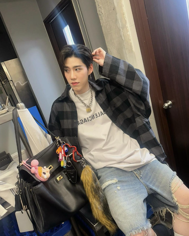 泰國男星PP Krit演出《以你的心詮釋我的愛》後爆紅,以簡單的白T牛仔褲及格仔襯衣搭配Balenciaga Rodeo。單把手 + 翻蓋與鎖頭的開口的設計,有著Hermès—Kelly包的影子。袋身採用小牛皮製作,柔軟垂墜,營造休閒鬆弛感,扣上大量吊飾,不論男女使用也十分型格!極簡 + 極繁的配搭,相當吸睛!