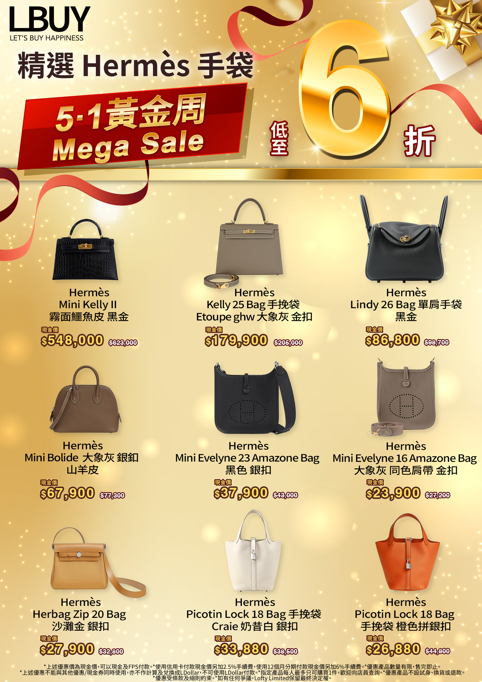 #LBuy #LBuyHK #LBuyMoko #LBuyYoho #LBuyDPARK #DGGbyLBUY扭蛋站 #2026正版正貨商標 #購物優惠 #折扣優惠 #51黃金周 #MegaSale #名牌手袋 #名牌折扣 #黃金周必買 #手袋 #Hermes #HermesBag #Kelly #Lindy #MiniEvelyne #Herbag #Picotin