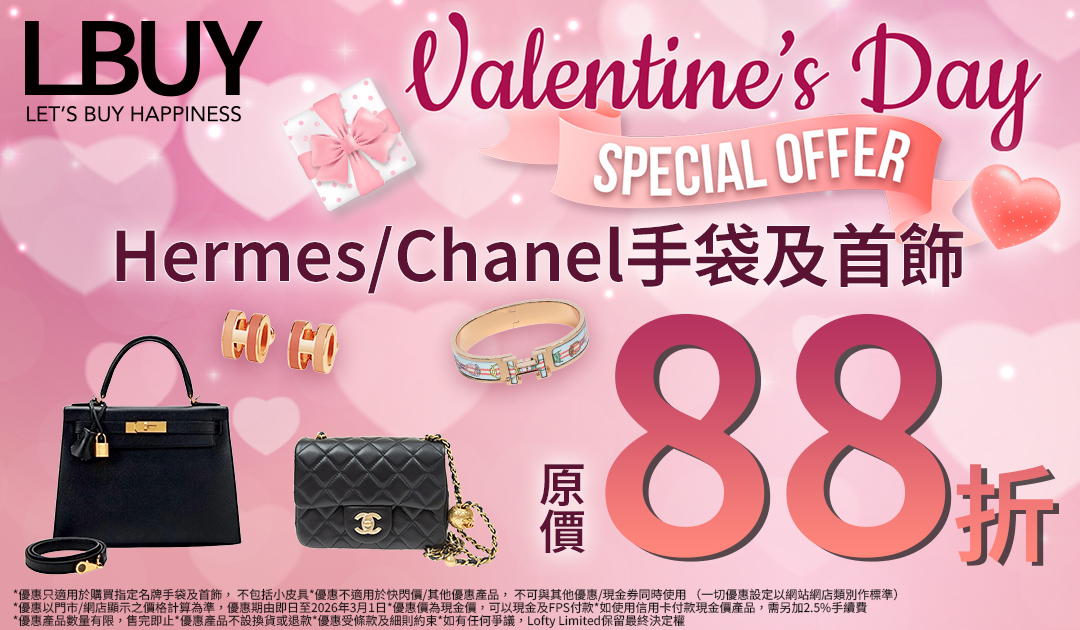 情人節,當然要好好寵愛自己與最愛的人💝LBuy 為你呈獻精選名牌手袋與首飾88折限定優惠,以經典質感與浪漫格調,點亮這個甜蜜而閃耀的季節✨