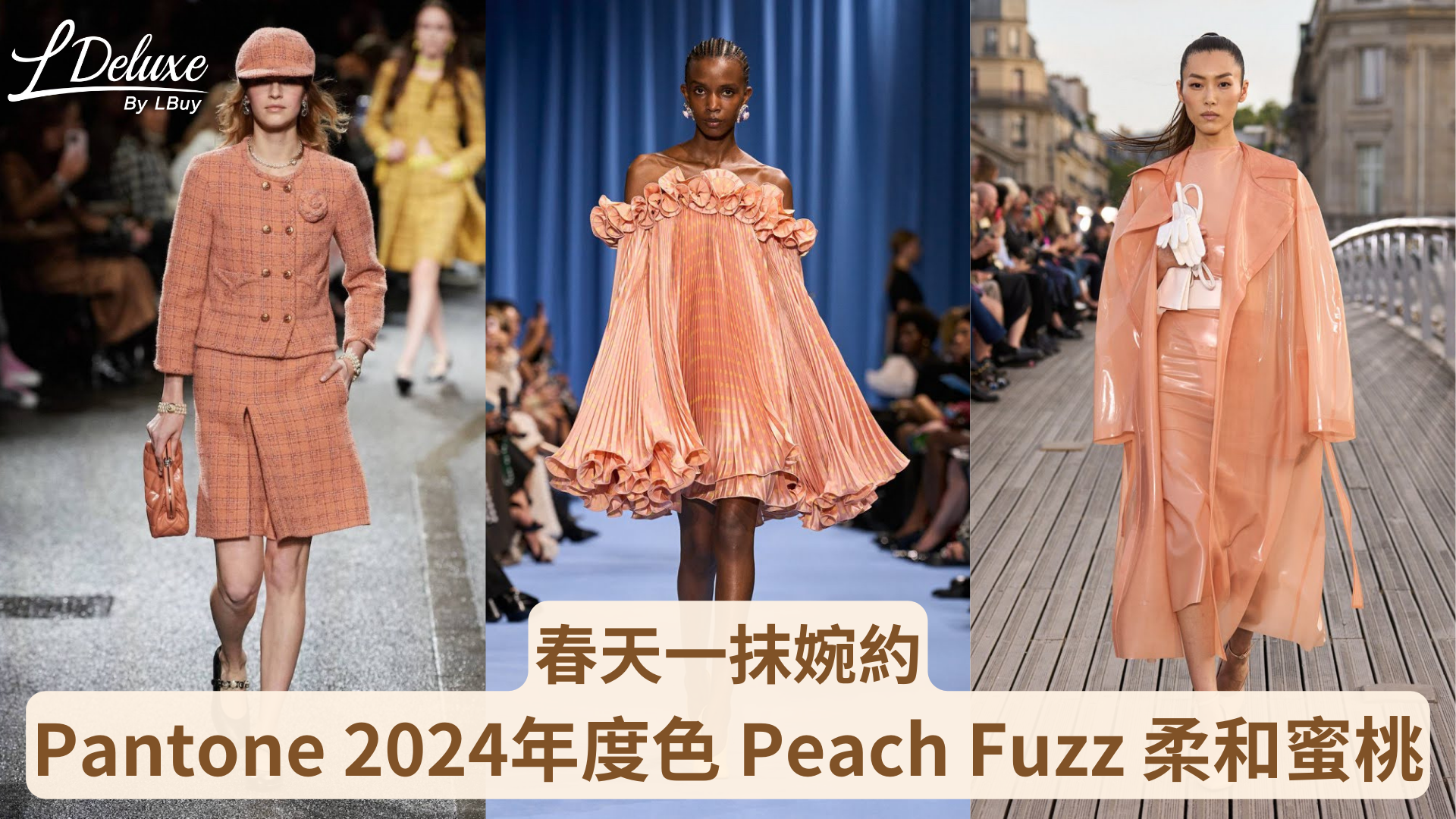Pantone每年都會選出不同的年度色,而2024的年度色便是Peach Fuzz—柔和桃。光聽名字便感受到一股暖流流入心中。正是因為疫情過後,Pantone覺得如此溫柔的顏色,既能治癒人心,又有其浪漫夢幻的一面。