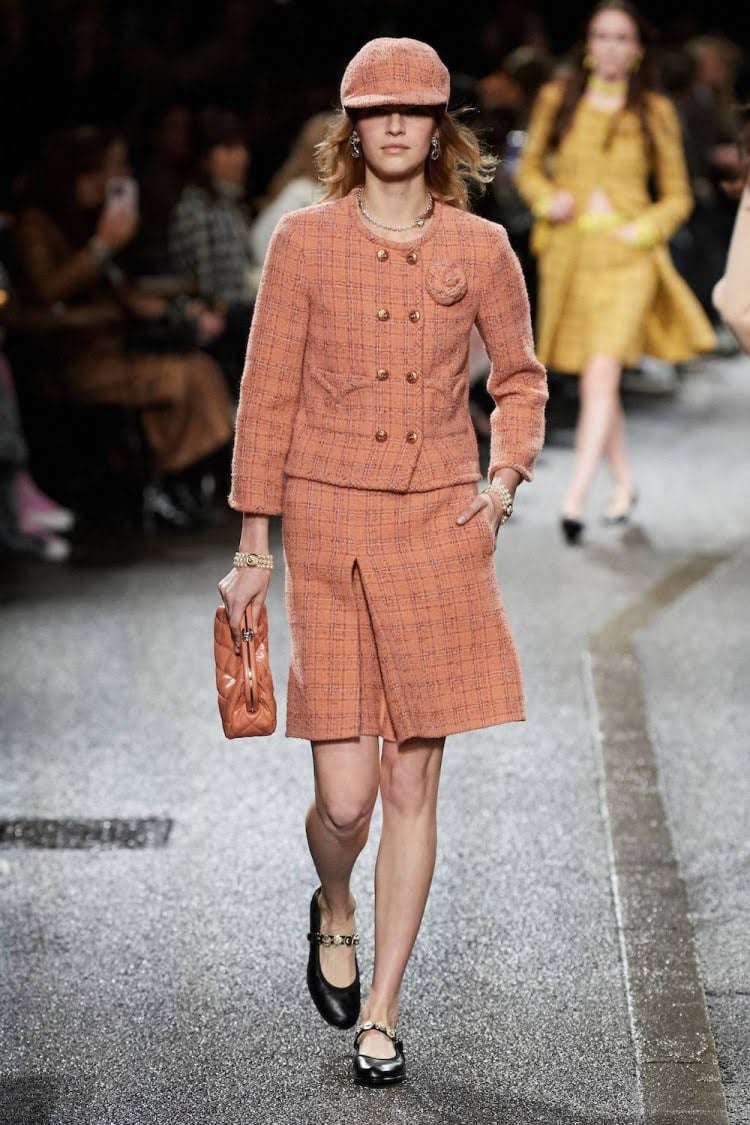 淺色的蜜桃色搭配黑色本身充滿衝突感。CHANEL用全蜜桃色添加一點黑,原本沉重的黑色反而令整體變得和諧。