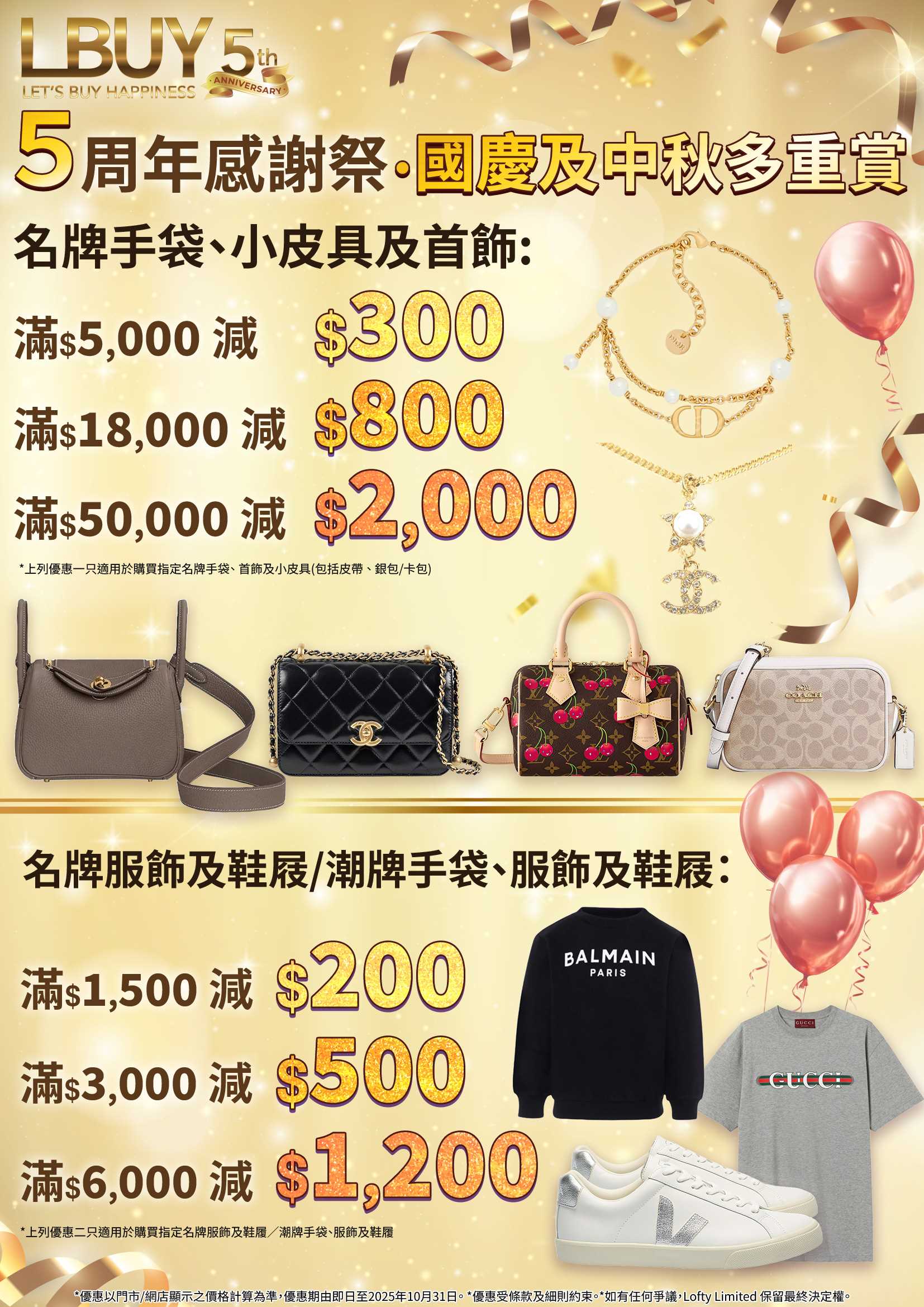 衷心感謝您一直以來對 LBuy 的支持與厚愛!💛 適逢 LBuy 5周年慶典及萬聖節將至,我們特別將「名牌及潮牌優惠」延長至 10月31日,為您準備一系列限時驚喜優惠,與您一同分享這份喜悅!