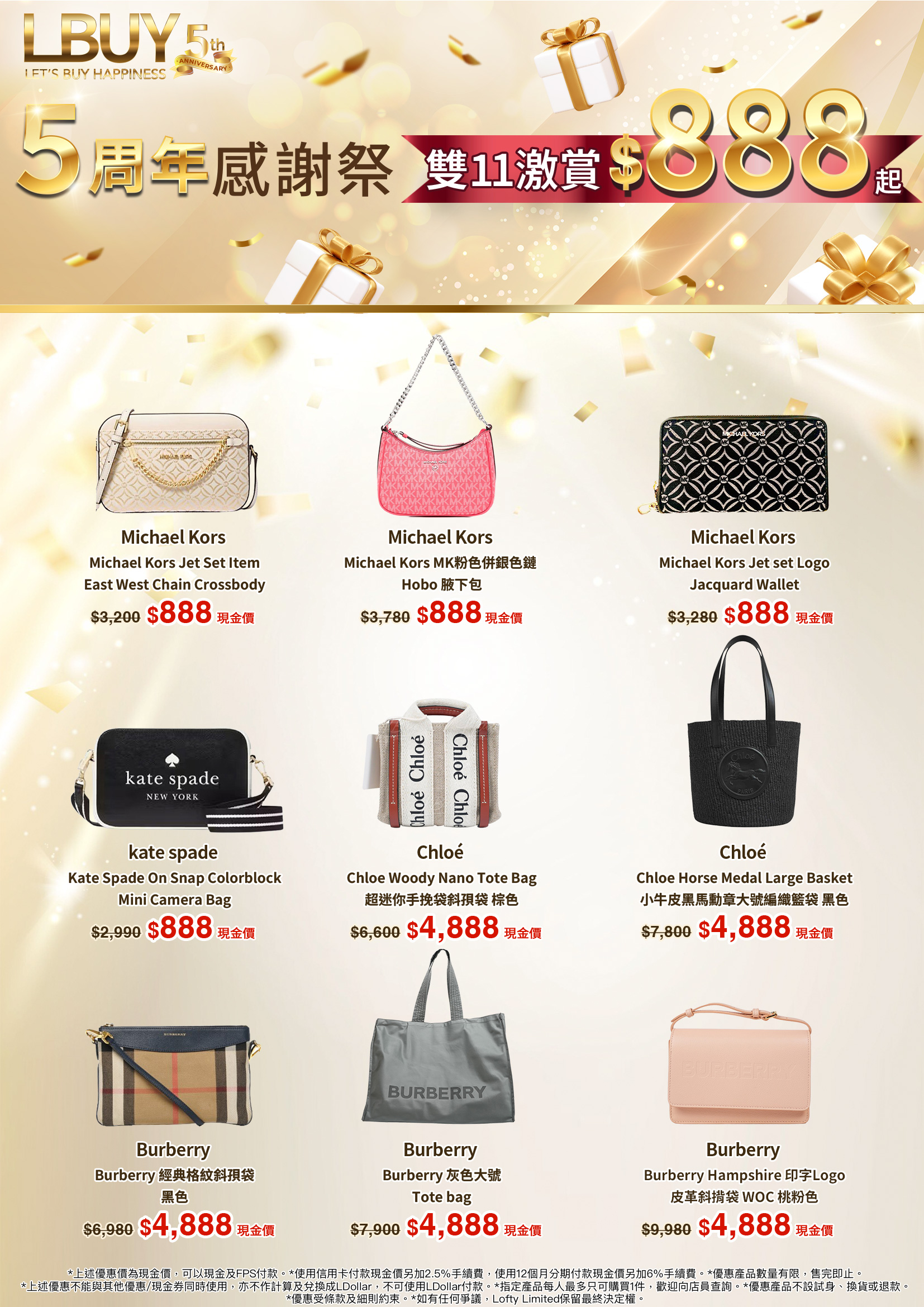 💖 踏入年尾購物季,LBuy 為你獻上雙11限時「精選專區」 —— 臻選國際名牌與潮流單品,均一價 $888 或 $4,888!立即入手你的專屬時尚珍藏,讓魅力與品味完美昇華🔥