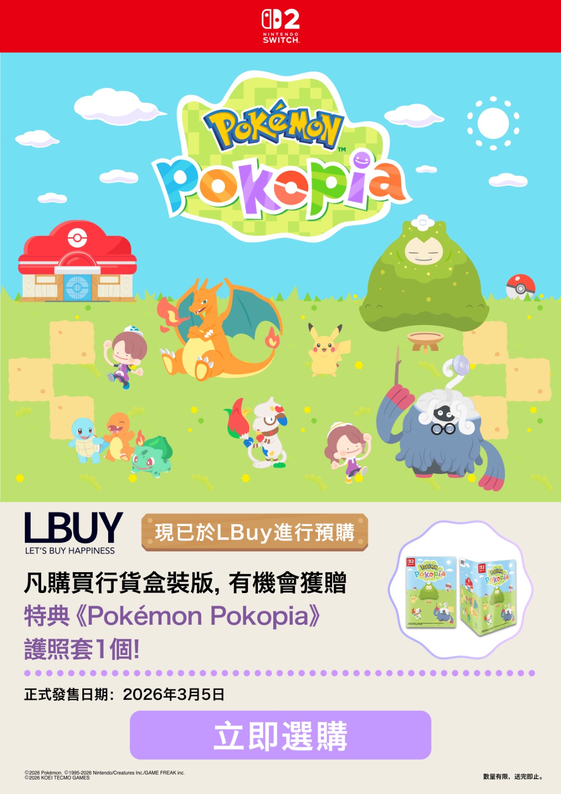 #LBuy #LBuyHK #LBuyMoko #LBuy精品主題店 #LBuyYoho #LBuyDPARK #LBuyCentral #DGGbyLBUY扭蛋站 #2026正版正貨商標 #任天堂 #NintendoSwitch2 #Nintendo #NintendoSwitch遊戲 #遊戲配件 #寶可夢 #PokémonPokopia #特典