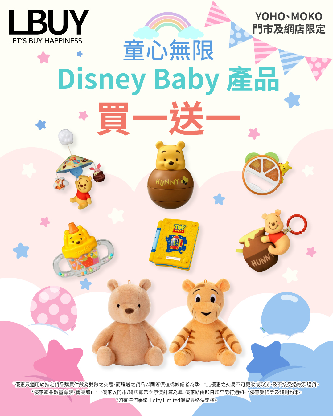 LBuy 現於 YOHO、MOKO 門市及網店推出 Disney Baby 精選產品買一送一優惠🔥,讓可愛與實用一次滿載而歸,幸福加倍~💝