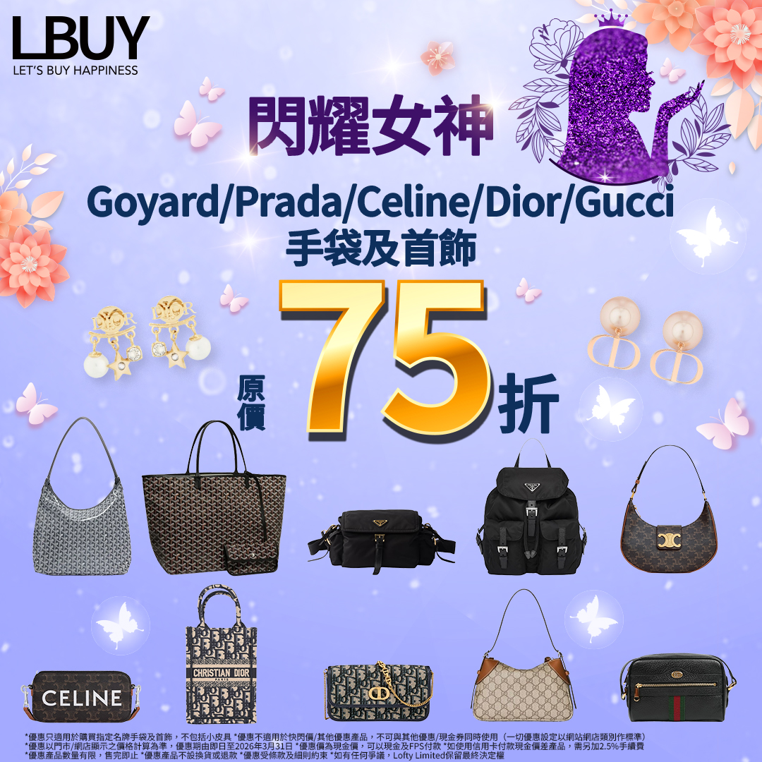 【💫閃耀女神・Goyard/ Prada/ Celine/ Dior/ Gucci 名牌手袋及首飾尊享原價75折✨】