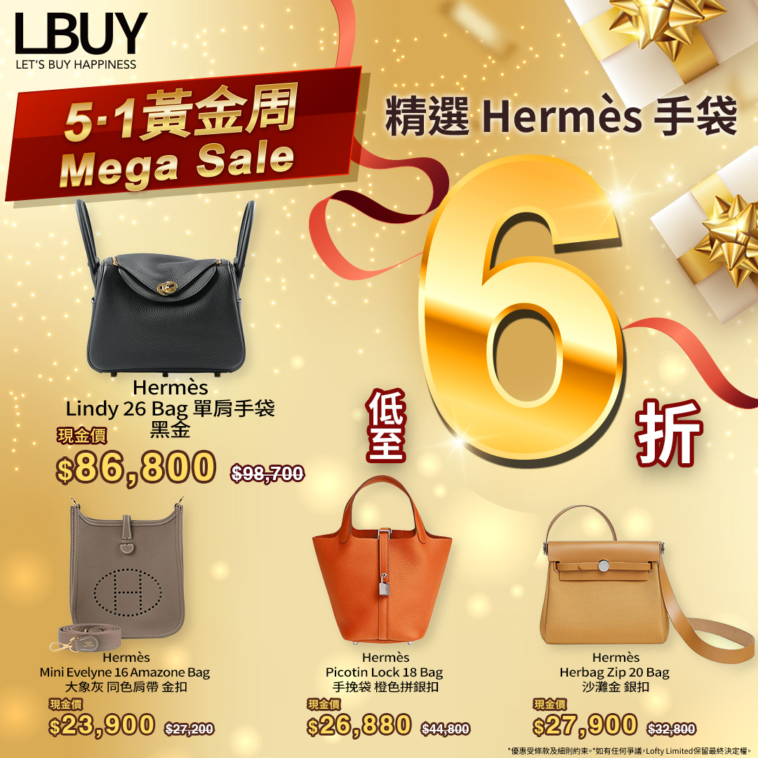 【5.1 黃金周 Mega Sale・精選H手袋低至6折👜】