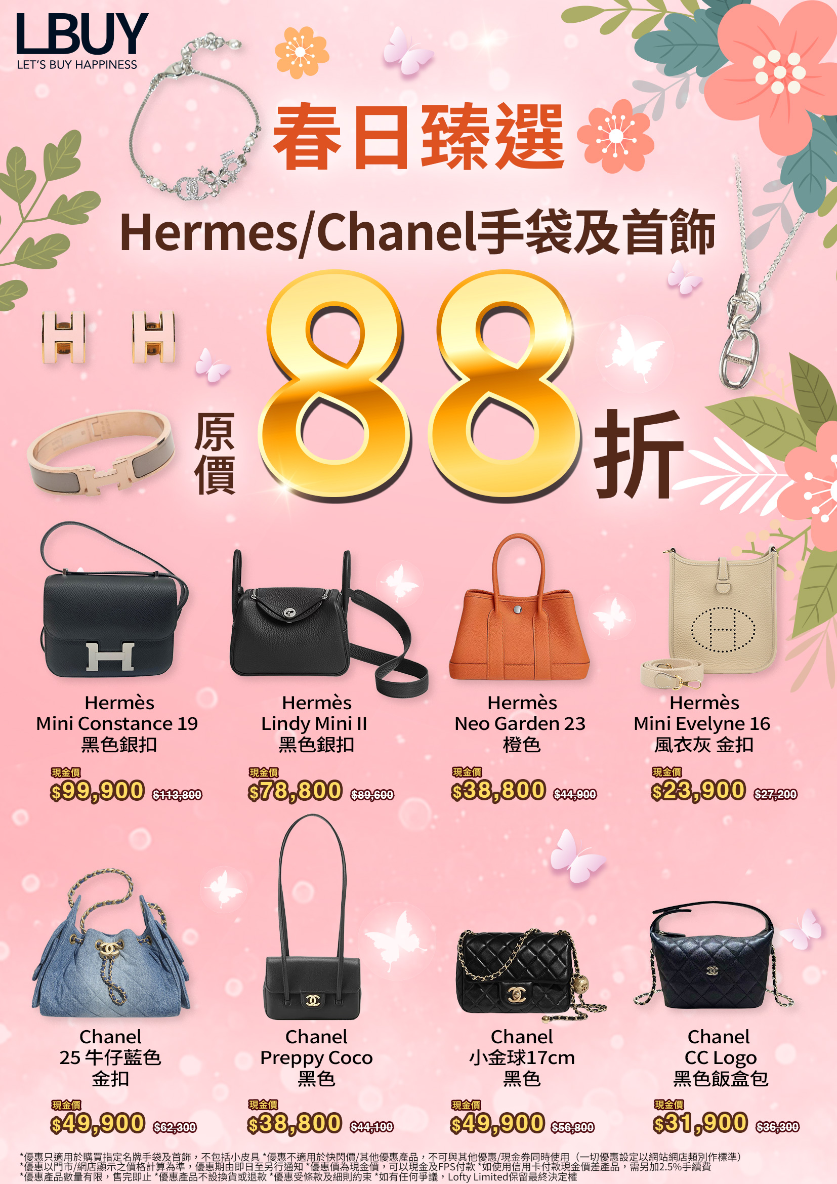 春光綻放,浪漫與優雅同步登場✨LBuy 為您精選 H/CC 名牌手袋及首飾,限時尊享原價 88 折優惠,以經典設計結合精緻質感,為每一刻增添高級而難忘的儀式感✨。