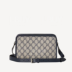Gucci Interlocking G Logo GG Supreme 帆布皮革 長方形斜揹袋 深藍色 658572