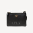 PRADA 雙層黑金字皮款斜孭袋 黑色