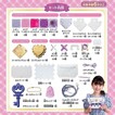 -設定內容:方形件14個、紐扣件1個、徽章件1個、底座件5個、接頭52個、擱腳件2個、10個、蓋子部件1個、底部部件1個、內袋1個、飾物1個、徽章貼紙1個、肩部肩帶1個、縫紉針1根、球鏈1條、緞帶1條、說明書1本、設計表1張