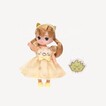 角色 [Cat] 橙色連衣裙、髮帶和 [Zassou] 設計包。