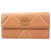 Chanel 焦糖色光面小羊皮配皮穿鏈CC Logo 垂蓋中長銀包 AP0953