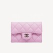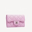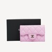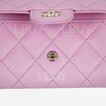 Chanel 經典款細號垂蓋卡片套 淺丁香紫粉牛皮配淡金色CC Logo扣 AP0214