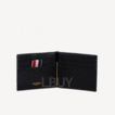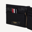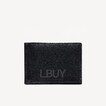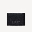 黑色卵石紋皮革錢夾,內部有 6 個卡位和黃銅錢夾。左側內部印有金箔標誌。左側標誌性條紋羅緞環袢。