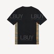 BURBERRY 黑色B字方標圓領併接格紋短袖T恤