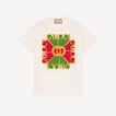 傳統細節以全新印花和提花細節的形式重新詮釋。 在這件灰白色棉質平紋針織 T 恤上,有新版 Gucci 復古標誌印花,是對品牌標誌性標誌的更新演繹。