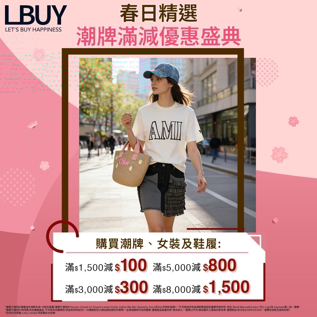 【✨春日精選|名牌滿減優惠盛典💝】 【✨春日精選|名牌滿減優惠盛典💝】 💐春日序曲悄然展開,LBuy 為您精心呈獻春日名牌滿減優惠。多款人氣品牌手袋、小皮具與首飾全面匯聚,從經典優雅到時尚新寵,為日常造型注入清新奢華氣息,綻放專屬光芒💫。 把握春日時光,入手心儀的名牌單品,為造型增添亮點,自信魅力隨步伐流轉💎。亦可挑選一份精緻名牌禮物,送予摯愛或犒賞自己,讓這個春天更添儀式感。 購買指定名牌手袋💼、小皮具👜及 2026-04-02 17:00:00