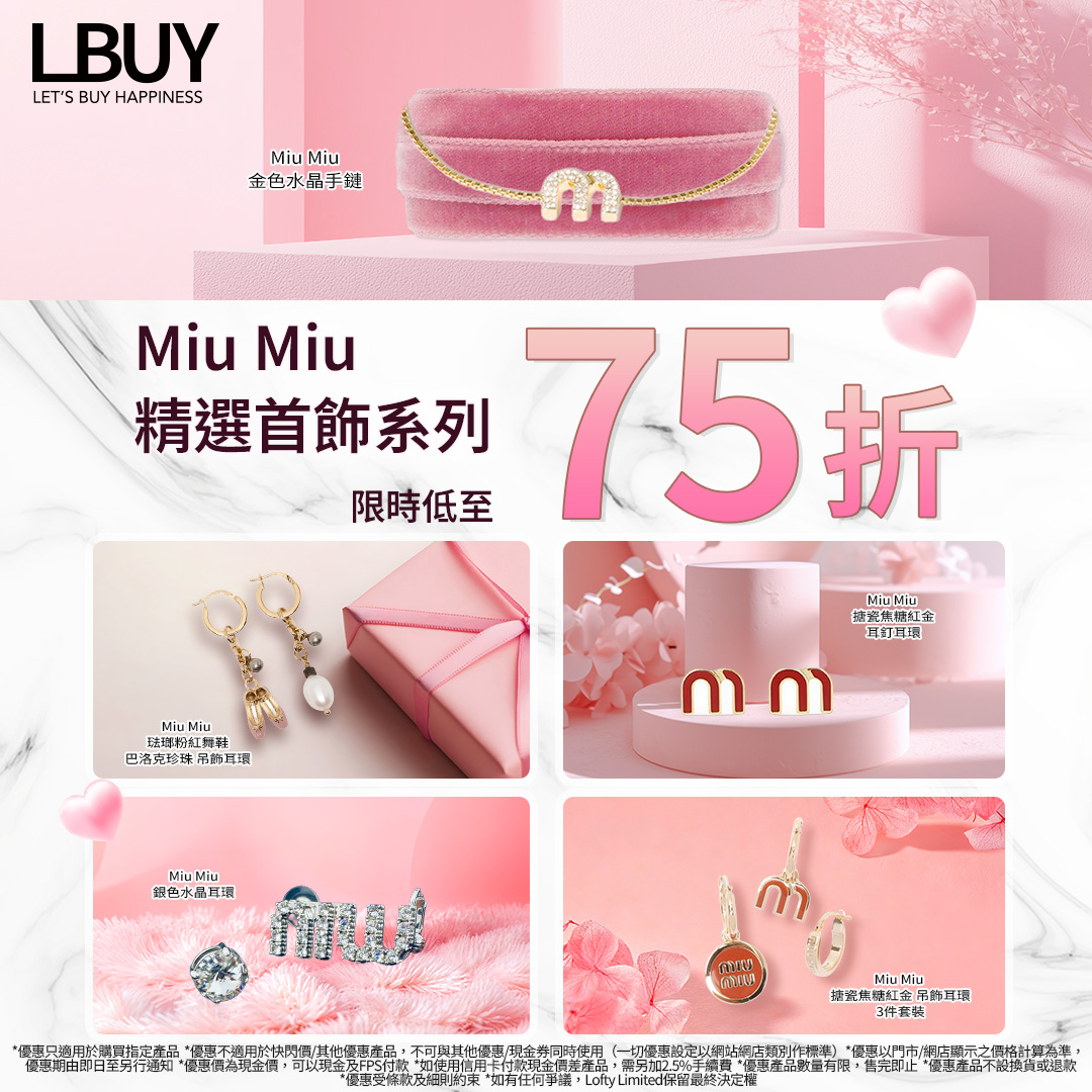 【✨Miu Miu 精選首飾系列 限時低至75折💎】 【✨Miu Miu 精選首飾系列 限時低至75折💎】 Miu Miu 精選首飾系列以細膩工藝結合當代美學,為日常造型注入低調而迷人的奢華氣息。從柔和珍珠、溫潤搪瓷到閃爍水晶,每一件耳環與手鏈皆散發細膩光芒✨,無論是上班日常、約會時刻或派對造型,都能輕鬆駕馭,點亮屬於您的時尚態度🌟 💫精選新品包括: ✨金色水晶手鏈 — 為整體造型添上亮眼焦點 🩰琺瑯粉紅舞鞋 巴洛克珍珠 吊飾耳環 — 2026-03-24 16:06:53
